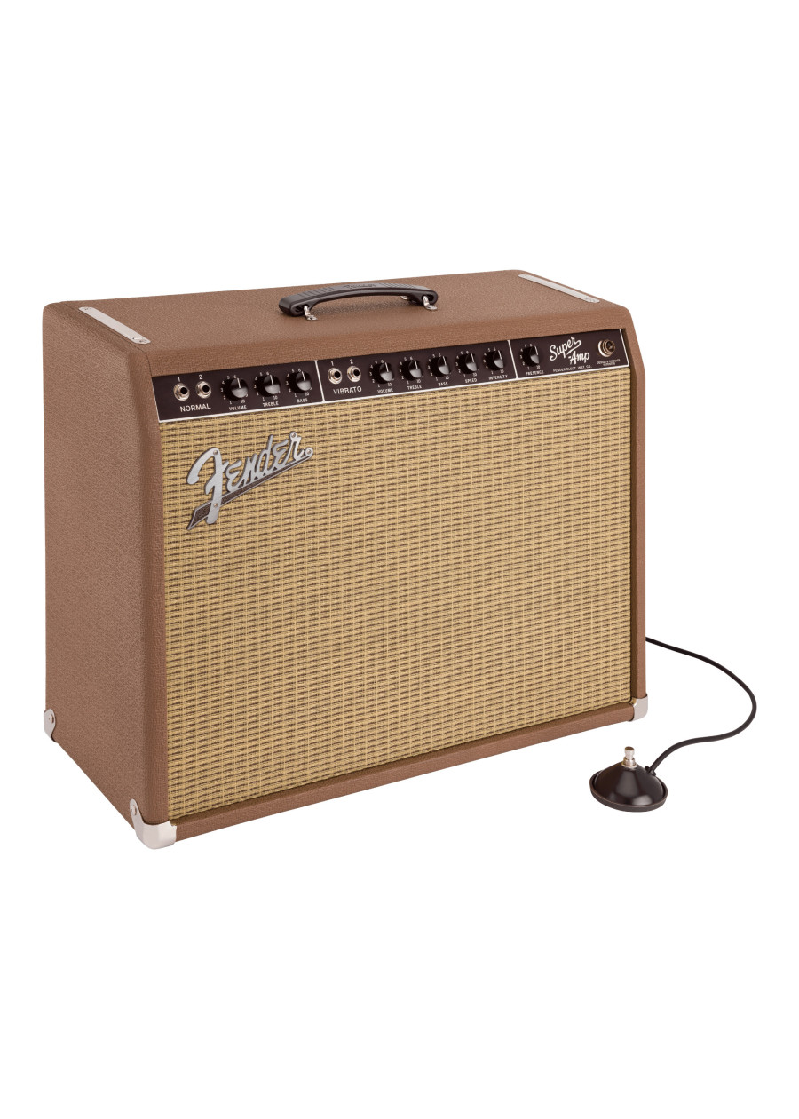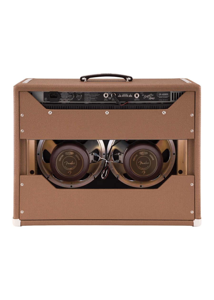 The first of the Fender® brown panel models, the '62 Super™ has an incredibly warm and woody sound when played clean blooming into sweet overdrive when cranked. Along with its special phase-shifting harmonic tremolo, this amp dishes out phenomenal tone at any volume. With dual 6L6 power tubes pushing 40 watts through two 10" Celestion® Custom Design speakers, the '62 Super™ is ideal for recording and gigging.