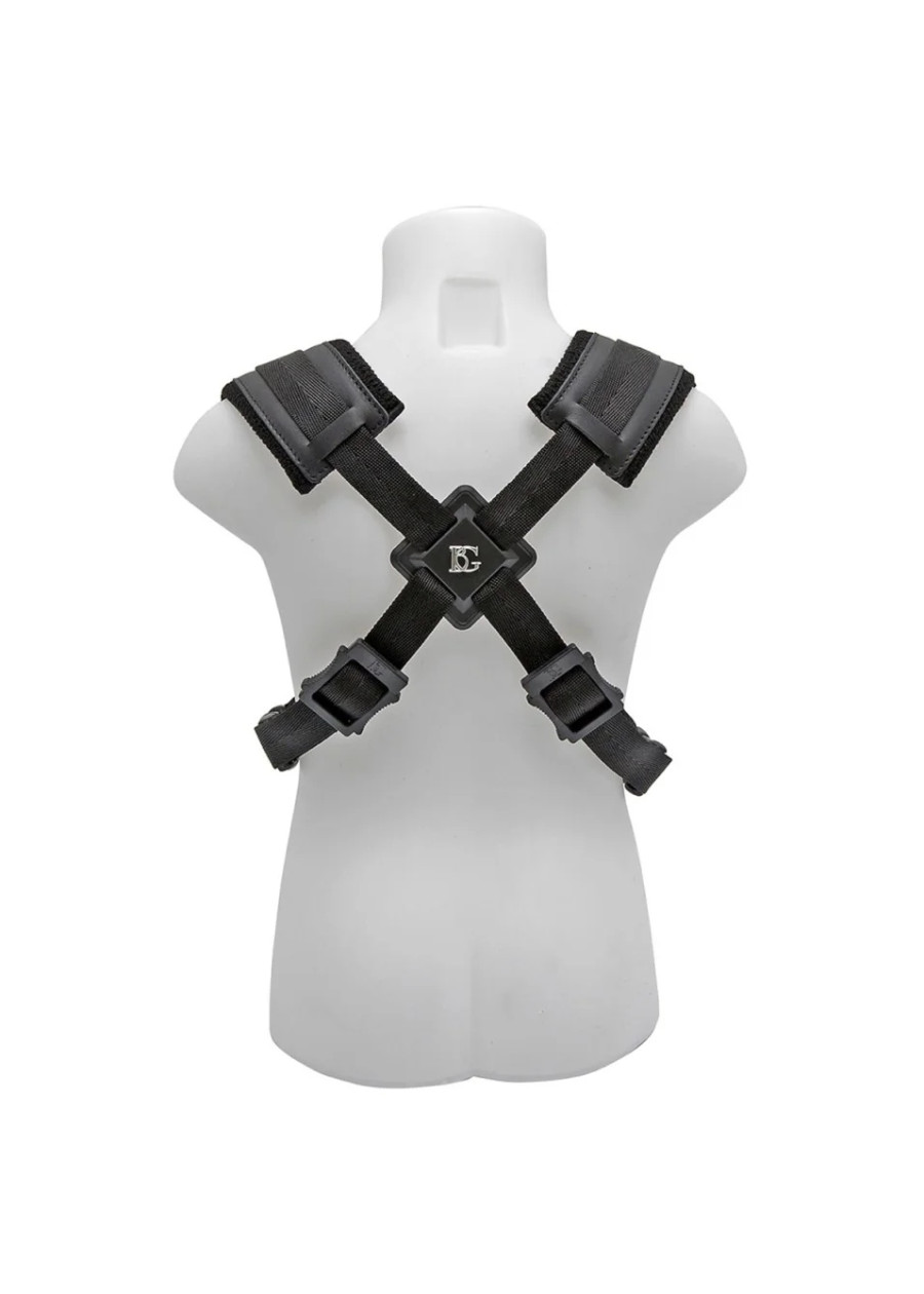 BG Comfort Harness for saxophone distributes the weight of the instrument evenly over the upper body.