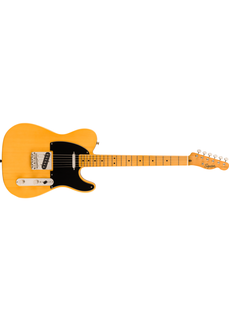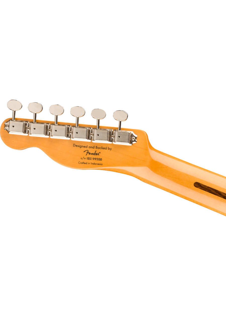 A celebration of the birth of the Tele® in the early 1950s, the Classic Vibe '50s Telecaster creates incredible tone courtesy of the Fender-Designed alnico single-coil pickups. Player-friendly features include a slim, comfortable "C"-shaped neck profile with an easy-playing 9.5"-radius fingerboard and narrow-tall frets, as well as a vintage-style Telecaster bridge with barrel saddles and string-through-body design. This throwback Squier model also features 1950s-inspired headstock markings, rich-looking nickel-plated hardware and a slick vintage-tint gloss neck finish for an old-school vibe.