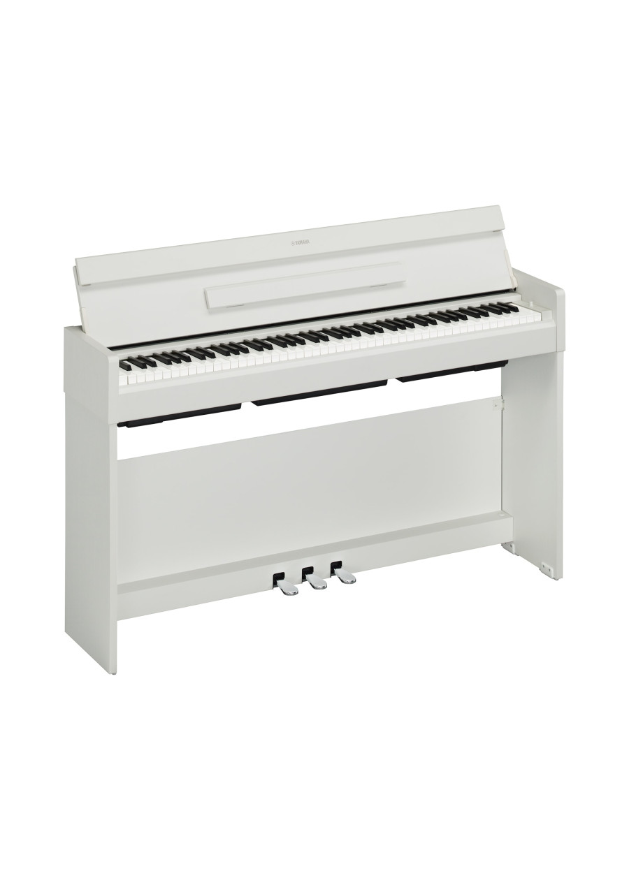 Slim size, 88-key model of the ARIUS digital piano featuring weighted keyboard. With Yamaha's CFX concert grand piano sound as a built-in Voice, experience a rich expressive playing feel with the GHS keyboard. Includes newly equipped ear-friendly functions, and compatibility with Yamaha’s Smart Pianist app. Lid becomes flat tabletop when closed.
