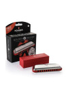 The Golden Melody Progressive, HOHNER’s only professional diatonic model tuned to equal temperament, has undergone a radical redesign to improve handling, stability and airtightness. While retaining the warm tone which has made it a favorite of single note melody players in many different styles, the new Golden Melody Progressive offers a fuller, more powerful sound, combined with optimal playing comfort. And it looks great too!