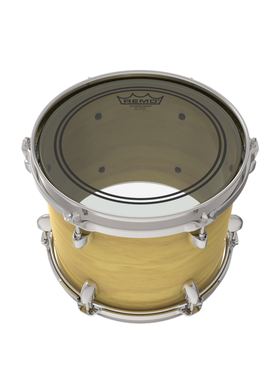 The Powerstroke® 3 Clear features focused mid and low tones with well-defined attack. Constructed 1-ply 10-mil Clear film with a 3-mil inlay ring for Toms and Snares and a 10-mil inlay ring for Bass drumheads, Powerstroke® 3 Clear provides a perfect balance of response and tone control.