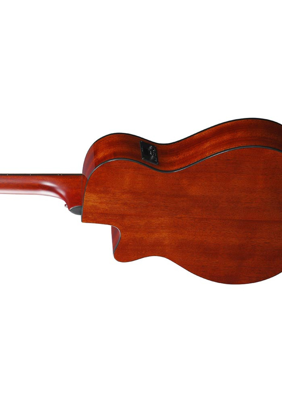 The AEG Series' slender, single-cutaway bodies deliver powerful and balanced acoustic sound, unplugged or through an amp or PA system. These guitars combine easy playability, classic solid and sunburst finishes, and intuitive electronics to create a quality, workhorse acoustic guitar that will rise to any occasion. High quality Ibanez under-saddle pickups and Ibanez preamps with onboard tuners provide sparkling tones that sound great in any environment.