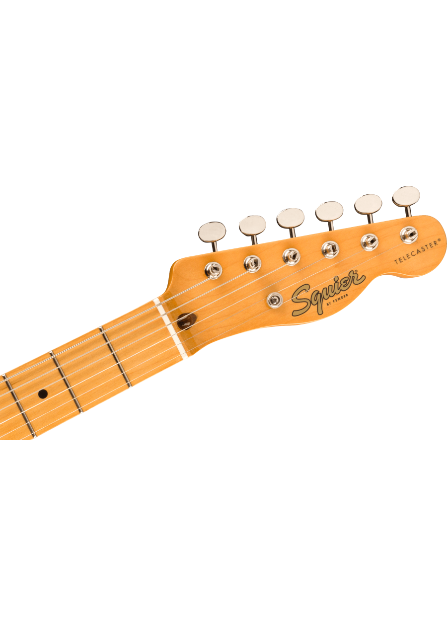 A celebration of the birth of the Tele® in the early 1950s, the Classic Vibe '50s Telecaster creates incredible tone courtesy of the Fender-Designed alnico single-coil pickups. Player-friendly features include a slim, comfortable "C"-shaped neck profile with an easy-playing 9.5"-radius fingerboard and narrow-tall frets, as well as a vintage-style Telecaster bridge with barrel saddles and string-through-body design. This throwback Squier model also features 1950s-inspired headstock markings, rich-looking nickel-plated hardware and a slick vintage-tint gloss neck finish for an old-school vibe.