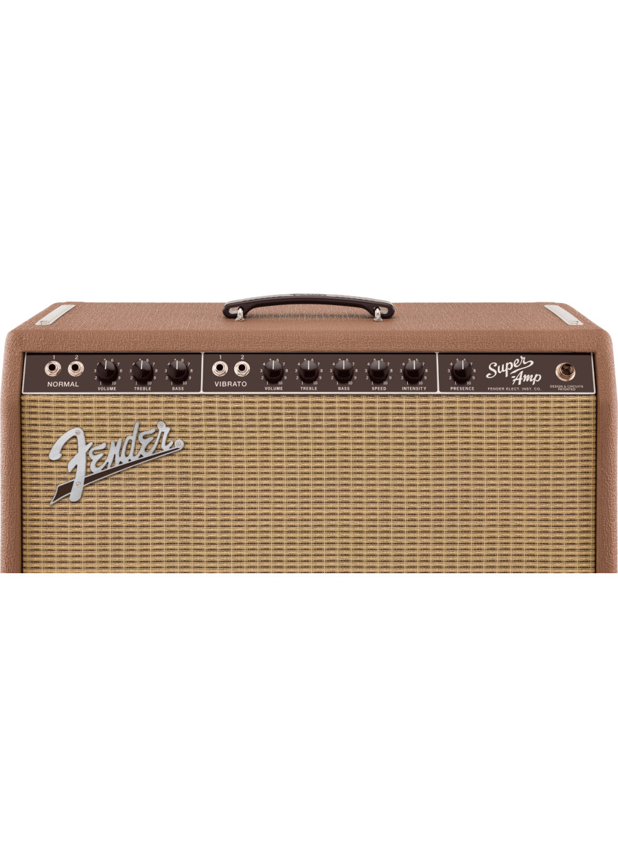 The first of the Fender® brown panel models, the '62 Super™ has an incredibly warm and woody sound when played clean blooming into sweet overdrive when cranked. Along with its special phase-shifting harmonic tremolo, this amp dishes out phenomenal tone at any volume. With dual 6L6 power tubes pushing 40 watts through two 10" Celestion® Custom Design speakers, the '62 Super™ is ideal for recording and gigging.
