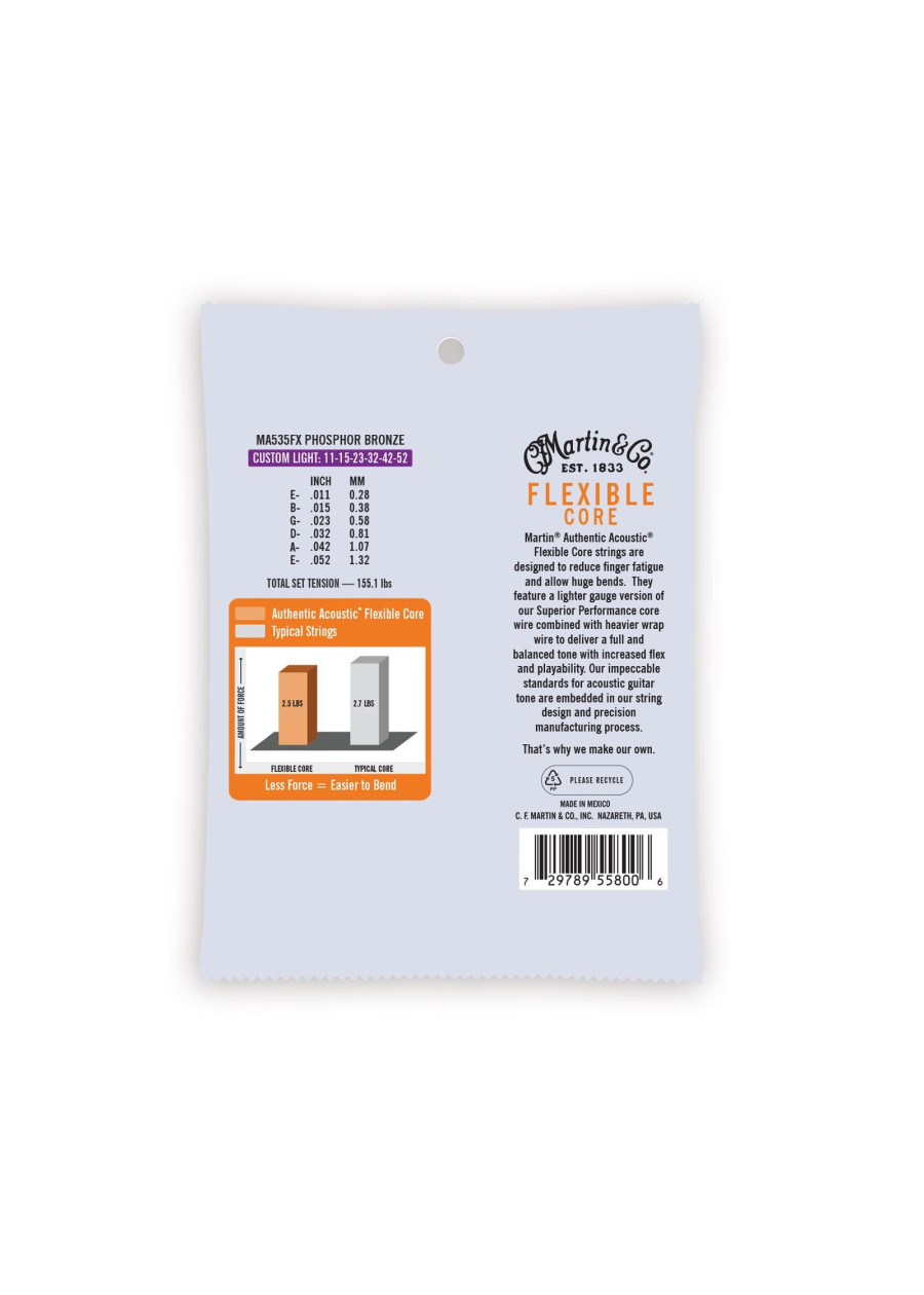 Martin® Authentic Acoustic® Flexible Core strings are designed to reduce finger fatigue and allow huge bends. They feature a lighter gauge version of our Superior Performance core wire combined with heavier wrap wire to deliver a full and balanced tone with increased flex and playability. Our impeccable standards for acoustic guitar tone are embedded in our string design and precision manufacturing process. That’s why we make our own.