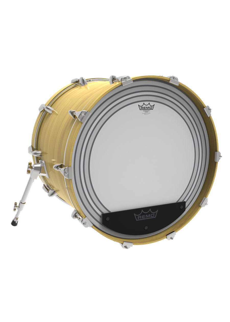 Powersonic® Coated Bass drumheads feature focused lows with subtle attack. Constructed with 2-plies of 7-mil and 5-mil Coated film, Powersonic® Coated Bass drumheads provide two specifically placed subsonic dampening rings and external snap on dampening system with impact patch for more attack. The external snap on dampening system allows you to customize your sound for different playing situations.