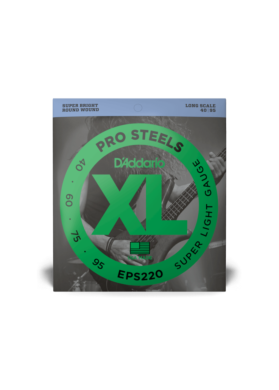 D'Addario XL ProSteels utilize an exclusive corrosion-resistant steel alloy that delivers super-bright tone without shrill overtones. They offer a palette of harmonically rich, brilliantly penetrating highs combined with pronounced, tight-and-tough lows.