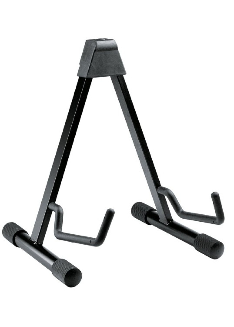 For acoustic guitars. Stable, sturdy, simple and easy to adjust and fold. Width adjusts from 220 to 350 mm. Support arms are covered with exclusive non-marring material to protect instrument finishes.
