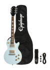 The Epiphone Power Players Les Paul™ is a 3/4+ version inspired by the legendary Gibson Les Paul shape. It has a 22.73” scale length and a slightly smaller mahogany body making it light, easy to play, and an excellent choice for younger players. The Power Players Les Paul is also a great travel guitar choice for more experienced players. It sounds better and stays in tune longer than other “student model” guitars due to its high-quality components and excellent build quality. The bolt-on mahogany neck has a sculpted heel for improved upper fret access, and it is powered by a pair of authentic Epiphone humbuckers™ for rich, full Les Paul tone. The Power Players Les Paul comes equipped with a gig bag, strap, picks, and a guitar cable.