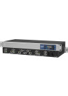 On its back, the device provides a variety of connectors to achieve maximum compatibility and versatility for a broad range of different use cases. Four optical and four coaxial MADI inputs are accepting MADI signals at any sampling rate and channel format, the outputs carry either a refreshed or one of the four newly created MADI signals over distances of up to 200m (coaxial) or 2000m (optical).