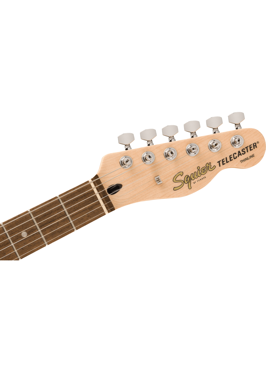 A superb gateway into the time-honored Fender® family, the Squier® Affinity Series® Telecaster® Thinline delivers legendary design and quintessential tone for today’s aspiring guitar hero. This Tele® features several player-friendly refinements such as a thin and lightweight chambered body, a slim and comfortable “C”-shaped neck profile, a string-through-body bridge for optimal body resonance and sealed die-cast tuning machines with split shafts for smooth, accurate tuning and easy restringing. Loaded with dual Squier single-coil Tele pickups with 3-way switching for genre-defying sonic variety, this model is ready to accompany any player at any stage.