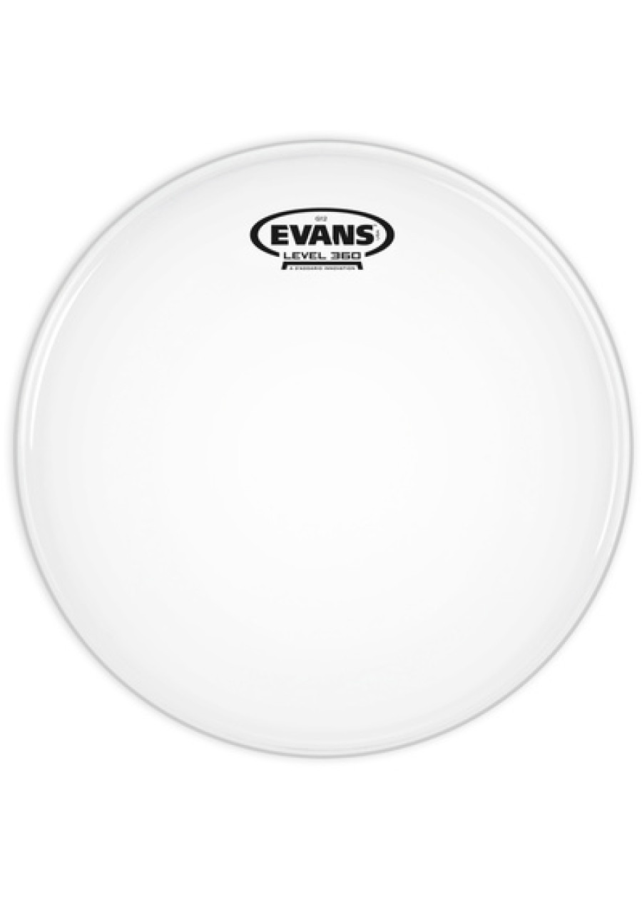 Evans 14" G12 White Coated Tom Tom Drumhead, B14G12, Using an exclusive 12mil film made especially for Evans, the G12 delivers the open and warm tone of a traditional single-ply while the added thickness provides increased durability, attack, projection, and a dense and centered pitch that other single-ply heads lack. The Coated version delivers additional warmth, focus, and depth, plus a unique translucent appearance.