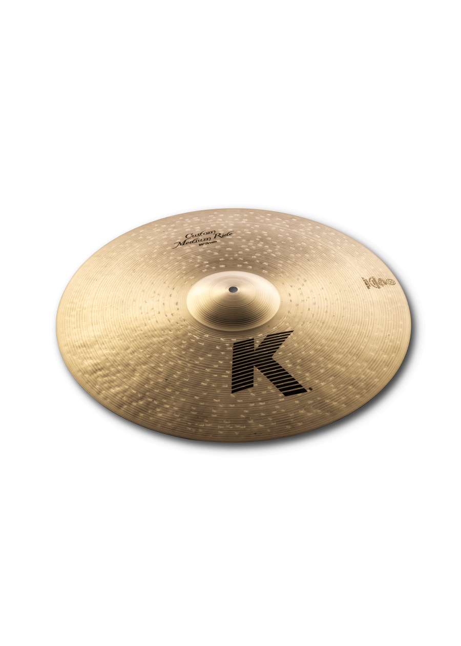 The K Custom Medium Ride is a versatile all-around ride with good stick definition, a clear bell and warm undertones. The unlathed underside gives the cymbal a generally more focused sound. A different finish is featured on each side - Traditional on top, and Brilliant on the underside.