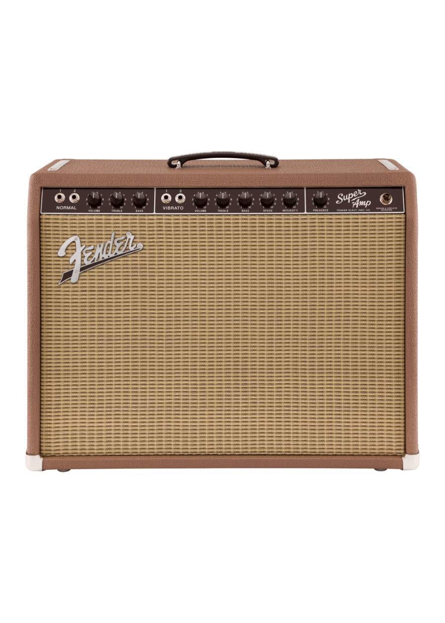 The first of the Fender® brown panel models, the '62 Super™ has an incredibly warm and woody sound when played clean blooming into sweet overdrive when cranked. Along with its special phase-shifting harmonic tremolo, this amp dishes out phenomenal tone at any volume. With dual 6L6 power tubes pushing 40 watts through two 10" Celestion® Custom Design speakers, the '62 Super™ is ideal for recording and gigging.