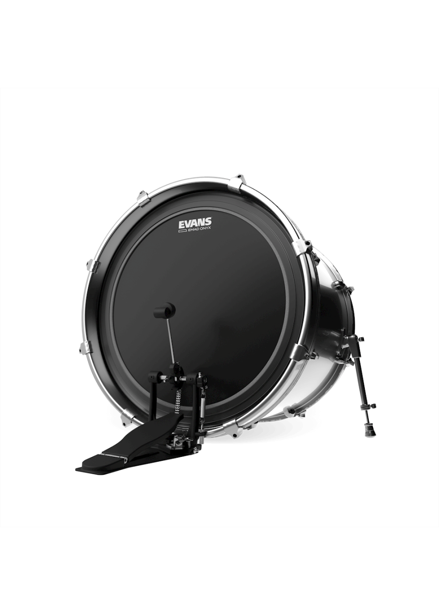 EMAD Onyx bass drumheads deliver increased low-end response and powerful attack, with the incredibly cool look of matte black and the ability to hone your tone with EMAD. Onyx bass heads are made with a single 10mil ply, complete with EMAD foam rings to adjust the head’s attack, focus, and sustain. Sonically, Evans Onyx black bass drumheads have a more defined attack, with a relatively short sustain, and a darker tone to match the aesthetic. This coated drumhead also features Level 360 Technology.
