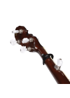 Designed for 4- or 5-string banjos and mandolin, the Banjo/Mandolin Pro Capo assures buzz-free, in-tune performance at any fret. A micrometer adjustment mechanism allows you to dial in the exact tension needed for clear ringing notes without excessive force in any position on the neck. This greatly reduces the need to retune your instrument during and after banjo/mandolin capo use. The sleek aircraft grade aluminum construction can withstand the toughest playing/touring schedule while adding negligible additional weight or obstruction to the instrument.