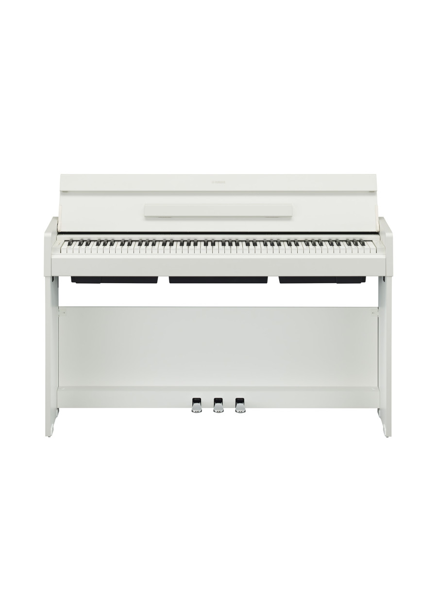 Slim size, 88-key model of the ARIUS digital piano featuring weighted keyboard. With Yamaha's CFX concert grand piano sound as a built-in Voice, experience a rich expressive playing feel with the GHS keyboard. Includes newly equipped ear-friendly functions, and compatibility with Yamaha’s Smart Pianist app. Lid becomes flat tabletop when closed.