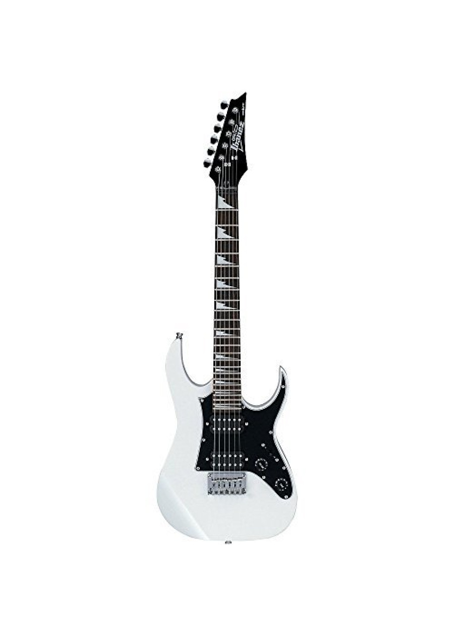 Mikro's 22" inch scale length (standard guitars feature a neck scale from 24 3.4" to 25 1/2") makes it the right choice for beginner players or pros practicing on the tour bus. Neck Material: Maple Neck Type: 22.2" scale GRGM Body: Basswood body Frets: Medium frets Fingerboard: Rosewood Inlay: Sharktooth Inlay Bridge: Fixed bridge NeckPU: PSND BridgePU: PSND HW Color: CH Finish: White