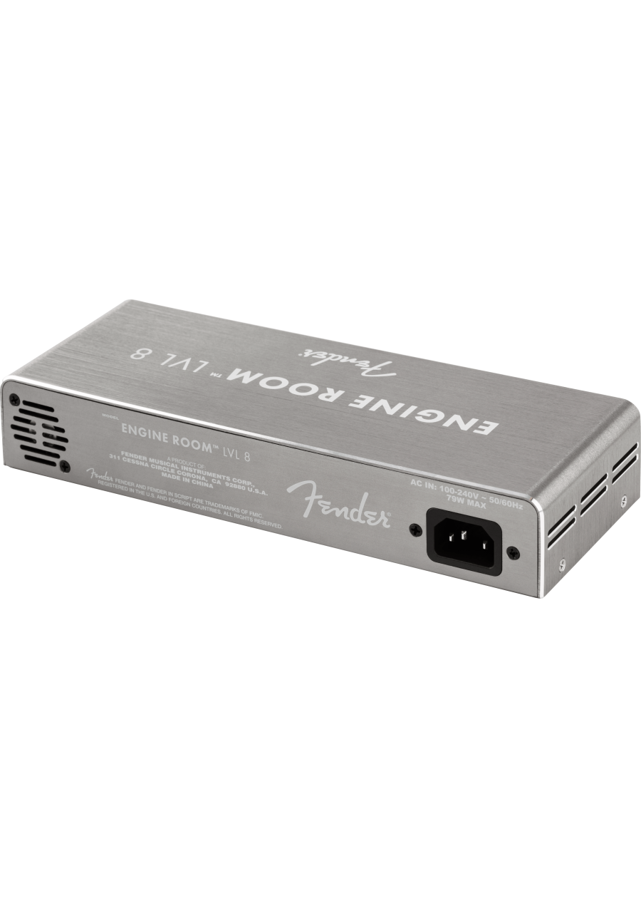 Pedals need clean isolated power and Fender's Engine Room® LVL8 Power Supply is capable of the task. Featuring eight ground isolated power outlets, (6) are capable of delivering 9Vdc at 500mA while (2) additional outlets provide switchable voltage (9v/12v/18v) via 3-way toggle or slide switch. Perfect for performance or studio players and can be daisy-chained with our LVL12 for players looking for more tonal variety.